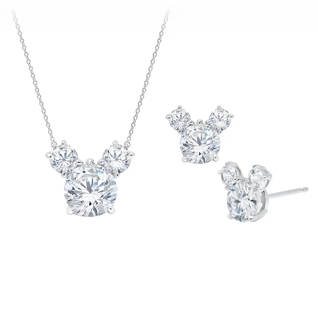 - Mickey Mouse icon pendant and earrings with handset flawless cubic zirconia