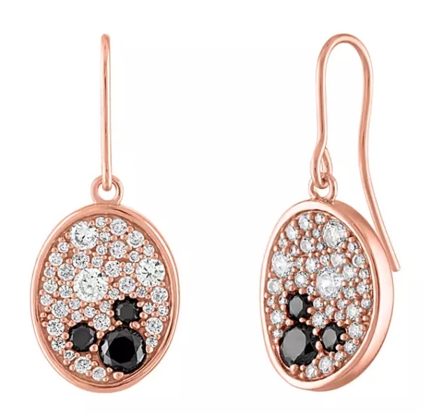 Mickey is framed in the oval design of these elegant earrings by Rebecca Hook. His iconic likeness is captured with black faceted cubic zirconia and surrounded with clear sparklingΒ cubic zirconias on these French wire dangle earrings which are detailed with a rose gold finish.